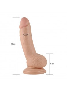 I bërë nga material PVC i butë, dildo i përmasave të mëdha është bindshëm dhe i fortë, me 18 cm në gjatësi, venat pulsuese dhe një majë për tu rrëshqitur dhe luajtur. E pajisur me testikuj që shpërthejnë, një përzierje që e bën këtë dildo ultra realiste në dukje dhe ndjesi! Jashtëzakonisht fleksibël, i aftë për tu përshtatur me pozicione dhe përdorime të ndryshme. Gota e fuqishme e thithjes në bazë e bën atë të qëndrueshme dhe të sigurt dhe mund të përdoret në sipërfaqe të ndryshme. Masat imponuese e bëjnë atë të përshtatshme për ekspertët në depërtimin dhe stimulimin përmes lodrave seksuale.