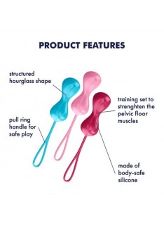 Set me tre topa elegante vaginale, Satisfyer Power Balls janë krijuar për t'ju dhënë një stimulim unik vaginal. Përdorimi i tyre ju lejon të forconi muskujt e legenit: një stërvitje e vërtetë për të shijuar orgazma më të mira dhe intensive! Brenda ka një zemër metalike të aftë të lëvizë topat në kanalin vaginal në çdo lëvizje më të vogël! Nëse përdoret vazhdimisht me kalimin e kohës, jo vetëm që do të keni tonifikim dhe elasticitet më të madh vaginal, por do të jeni në gjendje të parandaloni mosmbajtjen e urinës dhe gjithashtu të përgatiteni në mënyrë adekuate për një shtatzëni të mundshme.