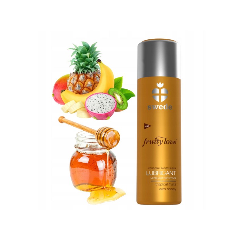 Fruity Love Tropical Fruit with Honey është një lubrifikant me bazë uji i aromatizuar me aromën ekzotike të mjaltit dhe frutave tropikale që ndihmon në rritjen e kënaqësisë dhe intimitetit! Sapo ta provoni, do t'ju pëlqejnë cilësitë e tij të shumta: ofron lubrifikim afatgjatë, lë një ndjenjë të butë dhe delikate në lëkurë, nuk irriton dhe është gjithashtu e lehtë për t'u shpëlarë. Jo vetëm kaq, mund ta përdorni edhe gjatë seksit oral të nxehtë sepse është i ngrënshëm!