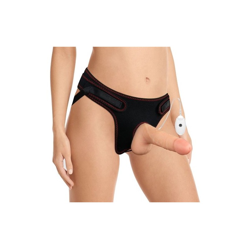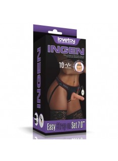 Seti Strapon Lovetoy Vibrating Easy Strapon Realistic është një rrip-on me dildo dhe testikuj realistë, i bërë nga material TPE, i butë në prekje, i montuar në një rrip të rregullueshëm që e bën atë të qëndrueshëm dhe të lehtë për t’u përdorur. Falë një kontrolluesi praktik, i cili lejon aktivizimin dhe rregullimin e dridhjes së dildos (2 shpejtësi dhe 8 lloje stimulimi), mund ta çoni kënaqësinë në një nivel edhe më intensiv dhe t'i jepni partneres suaj momente kënaqësie të pastër.