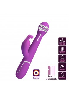 Përjetoni ndjesi të jashtëzakonshme me vibratorin Dejon për lepurin, i projektuar për t'ju ofruar kënaqësi intensive dhe të shumëfishta. Falë kombinimit të dridhjeve, rrotullimit dhe lëvizjeve shtytëse, çdo moment do të jetë një përvojë e plotë dhe dërrmuese. Shtresa e butë prej silikoni përkëdhel butësisht lëkurën, ndërsa motori i dyfishtë stimulon njëkohësisht klitorisin dhe pikën G. Vibratori Dejon për lepurin është shoqëruesi ideal për ata që kërkojnë emocione pa kompromis.