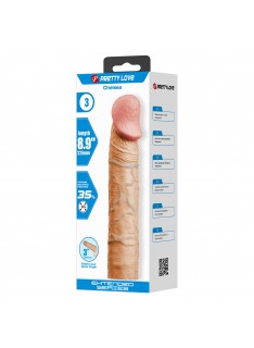Përjetoni një ndjesi fuqie të shtuar me mëngën Chelsea 22.5 cm, e projektuar për të intensifikuar çdo penetrim. Me një dizajn realist dhe strukturë elastike, ajo rrit gjatësinë e penisit me plot 7.6 cm dhe përmirëson perimetrin deri në 35%. Pjesa e jashtme me vena dhe kofsha e spikatur stimulojnë partneren tuaj, ndërsa pjesa e brendshme mbështjell penisin fort dhe rehat.