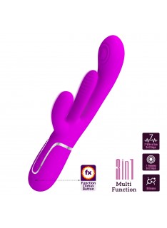 Kënaquni me kënaqësinë e plotë të vibratorit Shania, i projektuar për të stimuluar çdo zonë erogjene me precizion dhe intensitet. Boshti qendror arrin dhe stimulon thellë pikën G falë funksioneve të tij pulsuese, krahu qendror masazhon muret vaginale, ndërsa lepuri i jashtëm vibron intensivisht në klitor. Falë butonit të fuqishëm mund të lëshoni një valë kënaqësie të menjëhershme sa herë që dëshironi.