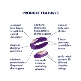 vibrator për çifte, domethënë një produkt që, i vendosur gjatë marrëdhënies seksuale, stimulon të dy partnerët në të njëjtën kohë. Vibrator është menduar për masazh të penisit, klitorit dhe vaginës njëkohësisht. Ka 10 mënyra të ndryshme dridhjeje dhe është plotësisht i papërshkueshëm nga uji.